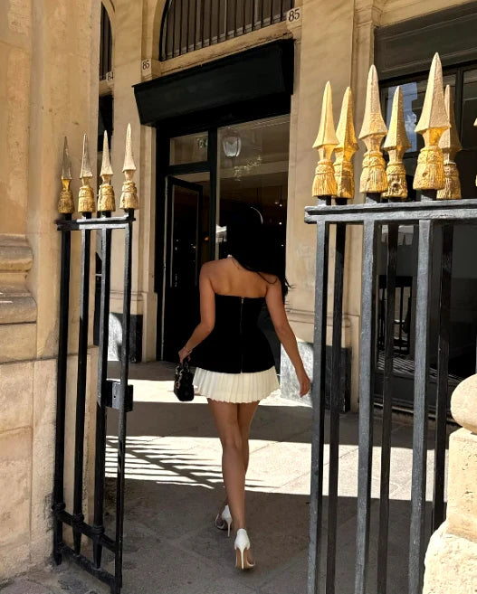Buyishang Elegant Homecoming Dresses Black Pleated Strapless Mini Dress short for women