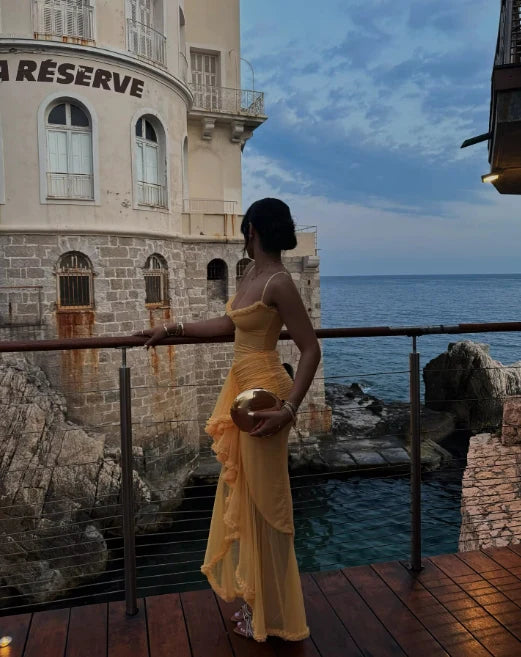 Elegant Boat Neck Ruffled Sleeve Ruched Mermaid Maxi Dress Mother of the Bride Dress