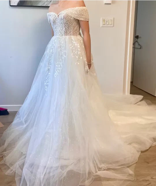 Stunning Glitter A-Line Off The Shoulder Long Tiered Prom Dress With Split