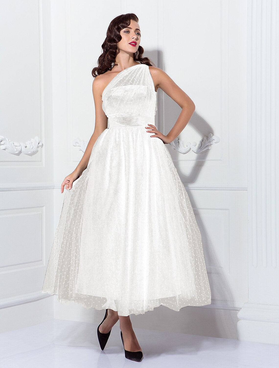 A-Line Cocktail Black Dress Vintage Dress Halloween Ankle Length Sleeveless One Shoulder Wednesday Addams Family Tulle with Pleats Pattern / Print - Black / US 2 / UK 6 / EU 32