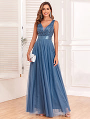 A-Line Evening Gown Empire Dress Evening Party Prom Floor Length Sleeveless V Neck