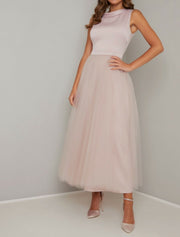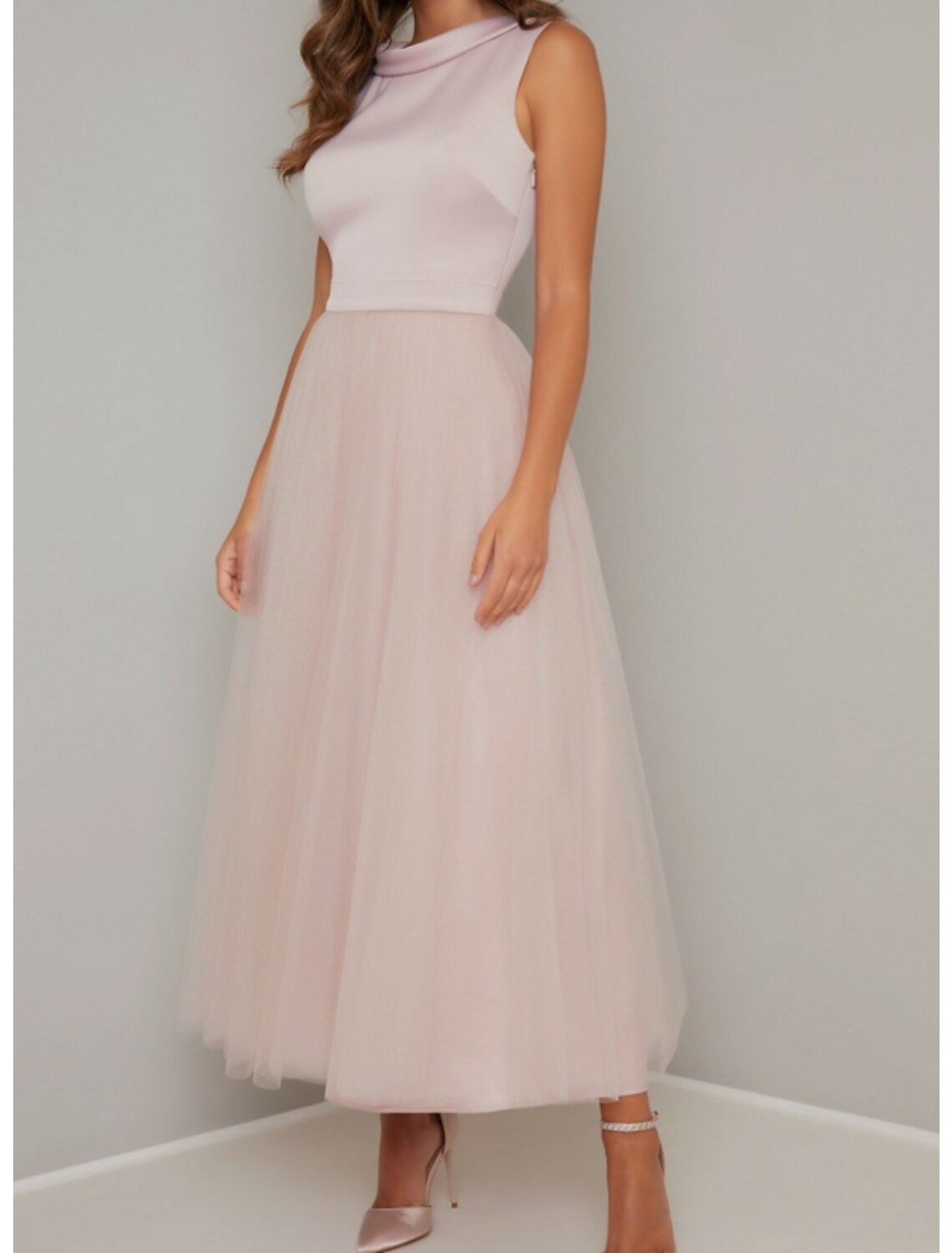A-Line Mother of the Bride Dress Plus Size Jewel Neck Ankle Length Satin Tulle Sleeveless with Lace - US 2 / UK 6 / EU 32