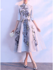 A-Line Mother of the Bride Dress Vintage Elegant High Neck Tea Length – Buyishang Dresses index