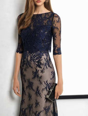 A-Line Mother of the Bride Dress Wedding Guest Simple Elegant Jewel Neck Floor Length Lace Sleeveless No with Appliques Solid Color - US 2 / UK 6 / EU 32