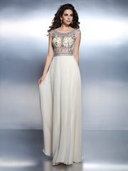 A-Line/Princess Bateau Beading Short Sleeves Long Chiffon Dresses