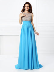 A-Line/Princess Bateau Beading Sleeveless Long Chiffon Dresses