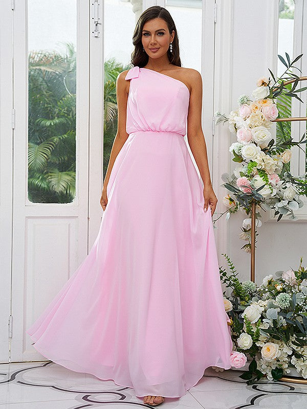 A-Line/Princess Chiffon Bowknot One-Shoulder Sleeveless Floor-Length Bridesmaid Dresses