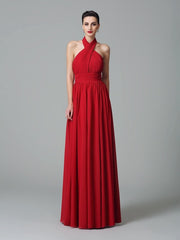 A-Line/Princess Halter Ruffles Sleeveless Long Chiffon Bridesmaid Dresses