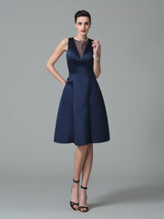 A-Line/Princess Jewel Ruffles Sleeveless Short Satin Bridesmaid Dresses - US 2 / UK 6 / EU 32