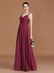 A-Line/Princess Lace Sweetheart Chiffon Ruched Floor-Length Bridesmaid Dresses