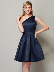 A-Line/Princess One-Shoulder Sleeveless Short Satin Bridesmaid Dresses