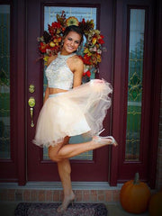 A-Line/Princess Scoop Beading Sleeveless Short/Mini Tulle Two Piece Dresses/Homecoming dresses