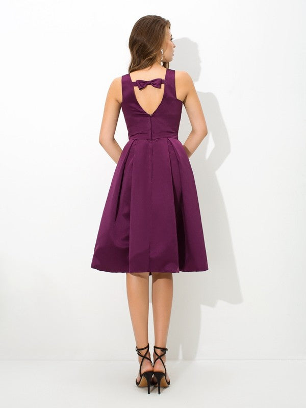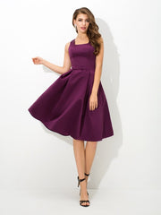 A-Line/Princess Square Pleats Sleeveless Short Satin Bridesmaid Dresses