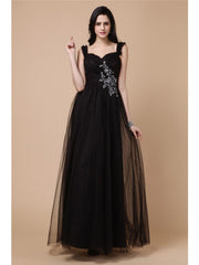 A-Line/Princess Straps Sleeveless Beading Applique Net Dresses