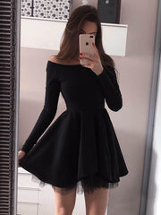 A-Line/Princess Stretch Crepe Ruched Off-the-Shoulder Long Sleeves Short/Mini Dresses