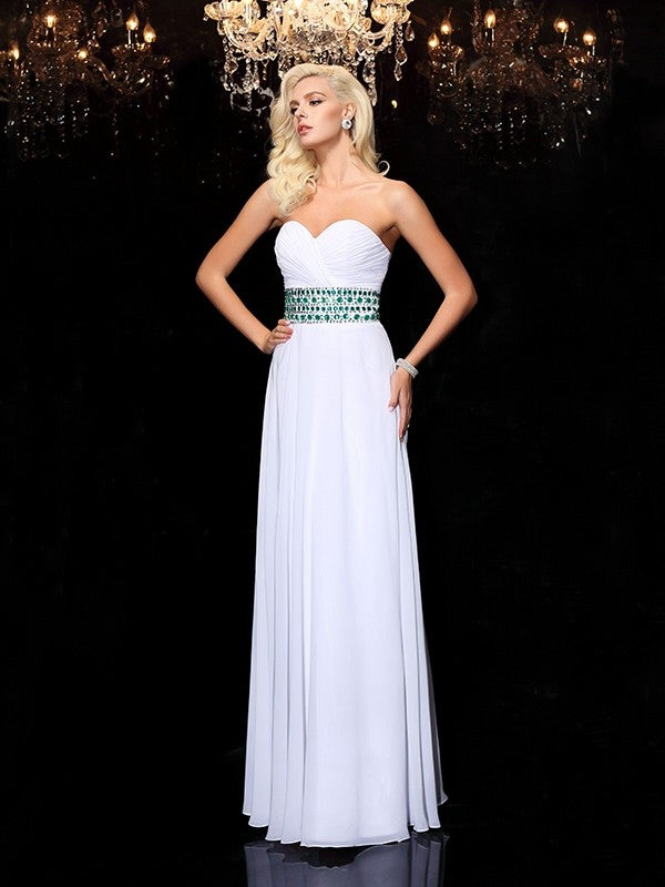 A-line/Princess Sweetheart Rhinestone Sleeveless Long Chiffon Dresses