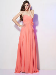 A-Line/Princess Sweetheart Sleeveless Hand-Made Flower Long Chiffon Dresses