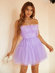 A-Line/Princess Tulle Ruffles Strapless Sleeveless Short/Mini Dresses - US 2 / UK 6 / EU 32