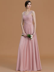 A-Line/Princess V-neck Sleeveless Floor-Length Beading Chiffon Bridesmaid Dresses