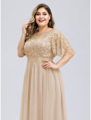A-Line Prom Dresses Plus Size Dress Wedding Guest Prom Floor Length Short Sleeve