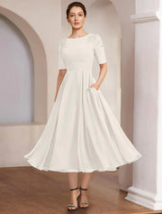 Buyishang A-Line Mother of the Bride Dress Formal Elegant Bateau Neck Tea Length Chiffon Half Sleeve with Lace free custom size - US 2 / UK 6 / EU 32