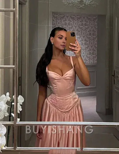 Buyishang Elegant A Line Spaghetti Straps Floor-length Satin Long Pink – Buyishang Dresses index