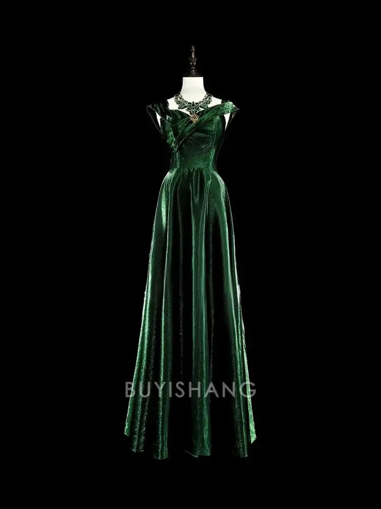 Buyishang Pretty A Line Sweetheart Ruffles Long Evening Dress Green Velvet Prom Dresses