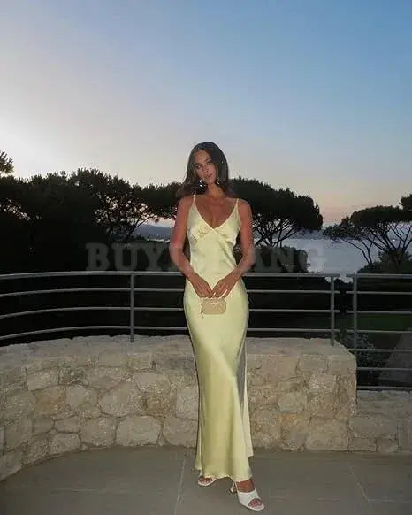 Buyishang Pretty Mermaid V Neckline Long Yellow Satin Party Dresses Prom Dresses formal wear dresses - US 2 / UK 6 / EU 32