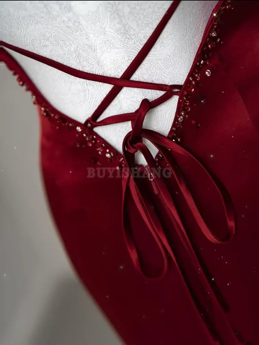 Buyishang Sexy Mermaid Spaghetti Straps Floor Length Burgundy Satin Ba – Buyishang Dresses index