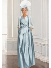 Buyishang Two Piece A-Line Mother of the Bride Dress Elegant Sparkle & Shine V Neck Floor Length Satin Sequined 3/4 Length Sleeve Wrap Included with Bow(s) free custom size - US 2 / UK 6 / EU 32