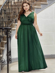 Double V Neck Maxi Long Plus Size Sparkly Evening Dresses for Party
