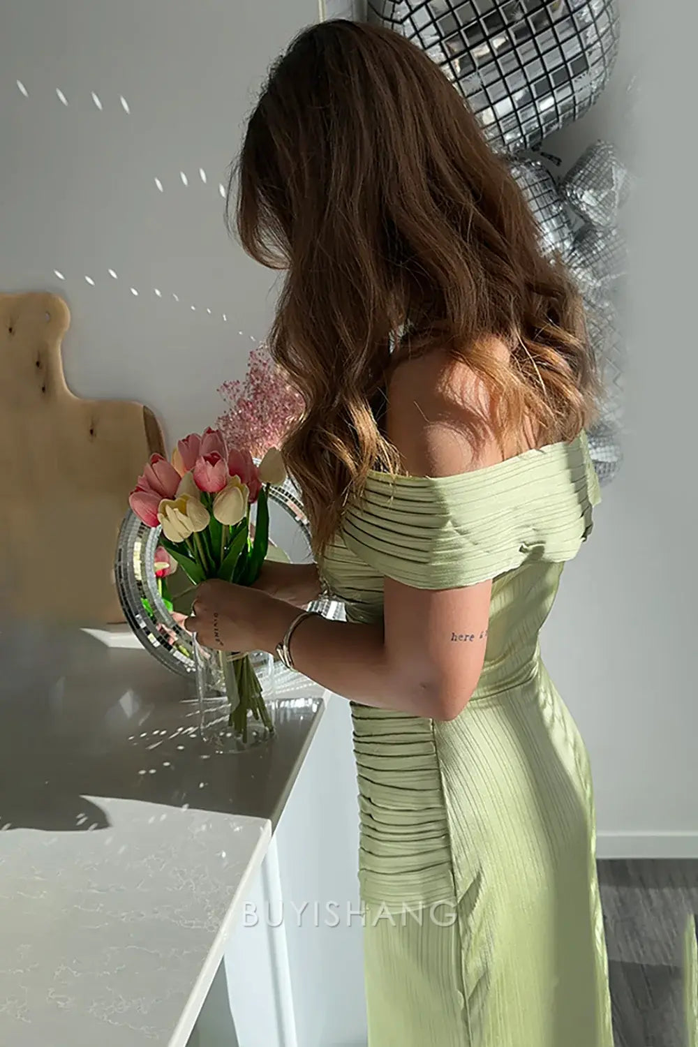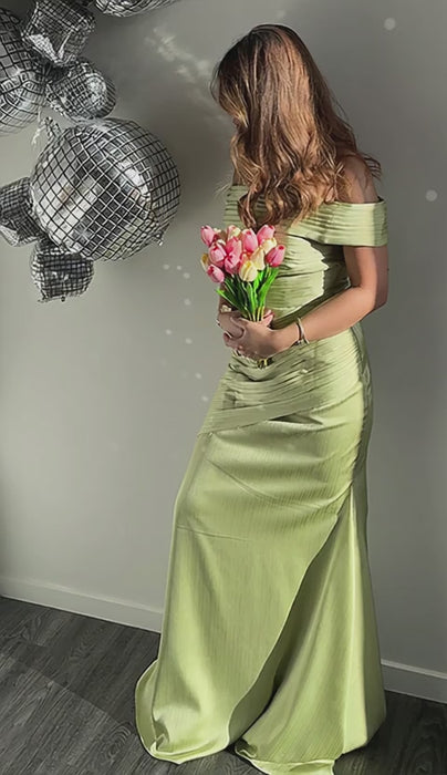 Step into elegance with Buyishang's off-shoulder ruched satin mermaid maxi dress. The off-shoulder design highlights your neckline and shoulders beautifully, while the ruched detailing at the waist creates a figure-hugging silhouette. The satin fabric exudes luxury and shine, and the mermaid cut adds a touch of sophistication, perfect for formal events or special occasions. The soft sage green hue and tailored design further elevate its timeless, refined appeal, ensuring you stand out at any glamorous gathering.