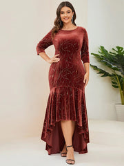 Elegant Plus Size Bodycon High-Low Formal Velvet Party Dress