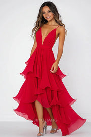 Red Deep V-Neck Pleated Long Prom Dress: Suitable for: proms, formal dinners, black-tie weddings, and upscale parties.
