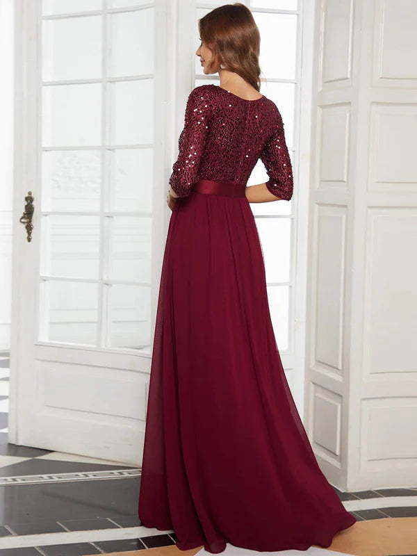 Elegant Round Neckline Long Sleeves Sequin Evening Dress