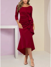 Mermaid / Trumpet Mother of the Bride Dress Wedding Guest Elegant Petite Scoop Neck Asymmetrical Stretch Fabric Long Sleeve with Ruffles Ruching