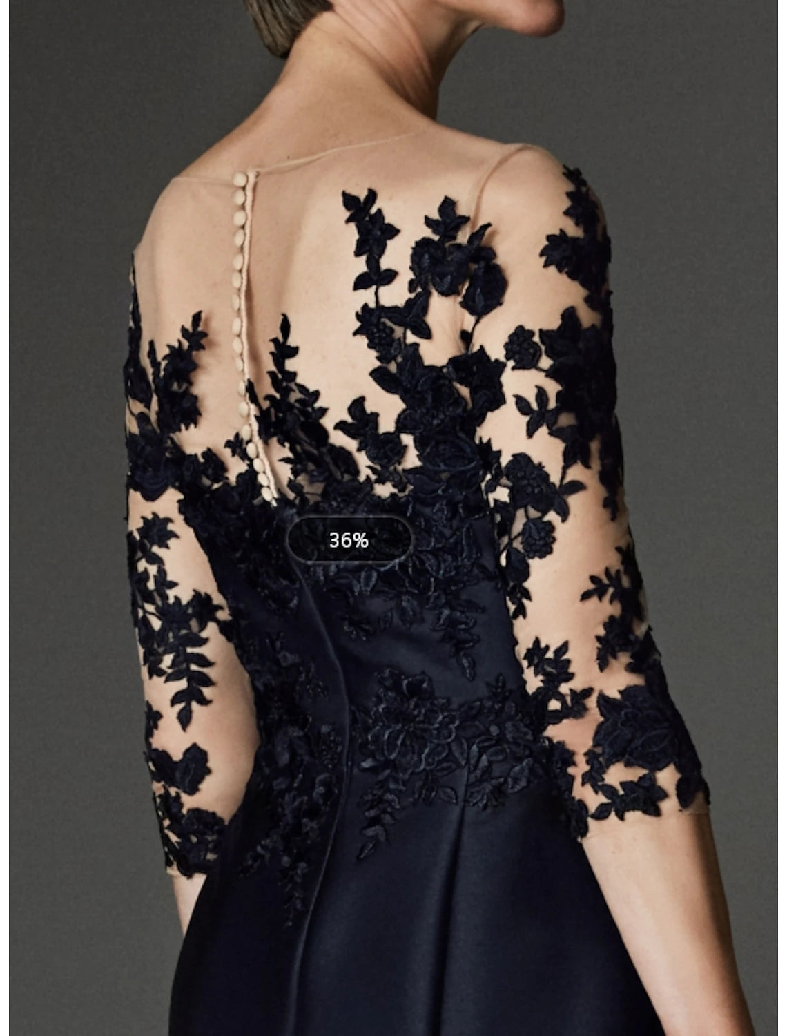 Mermaid / Trumpet Mother of the Bride Dress Wedding Guest See Through Bateau Neck Knee Length Satin Lace 3/4 Length Sleeve with Buttons Appliques