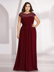 Plus Size Maxi Long Formal Lace Cap Sleeve Evening Dress