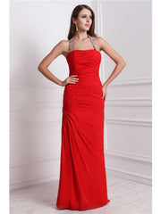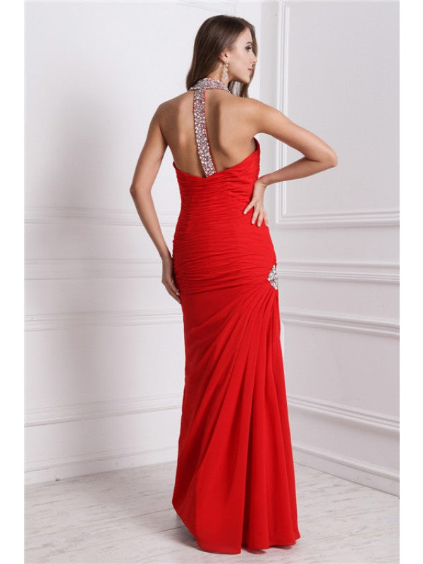 Sheath/Column Halter Beading Sleeveless Long Chiffon Dresses