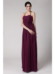 Sheath/Column Halter Sleeveless Hand-Made Flower Long Chiffon Bridesmaid Dresses