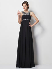 Sheath/Column High Neck Sleeveless Beading Long Chiffon Dresses