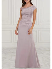 Sheath / Column Mother of the Bride Dress Elegant & Luxurious Bateau Neck Sweep / Brush Train Satin Short Sleeve with Appliques - US 2 / UK 6 / EU 32