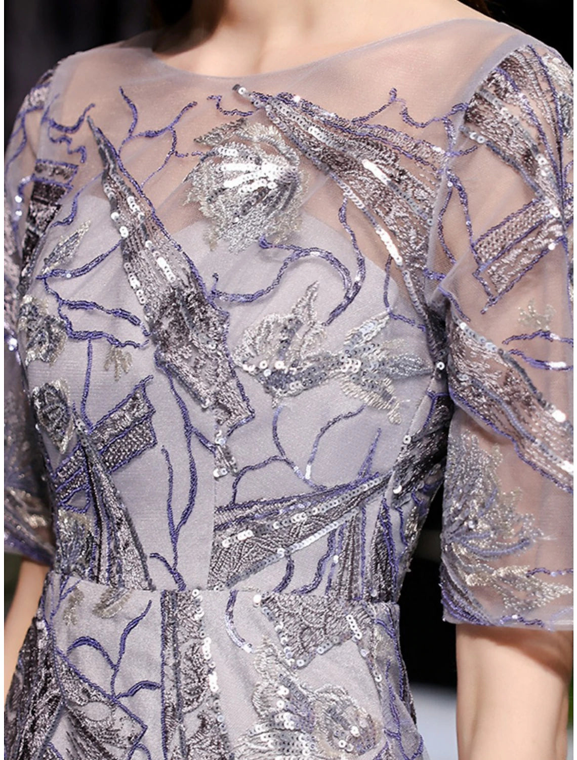 Sheath / Column Mother of the Bride Dress Wedding Guest Party Sparkle & Shine Petite Scoop Neck Tea Length Sequined Half Sleeve with Solid Color - US 2 / UK 6 / EU 32