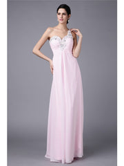 Sheath/Column One-Shoulder Sleeveless Beading Applique Long Chiffon Dresses