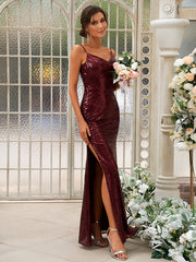 Sheath/Column Sequins Ruched Spaghetti Straps Sleeveless Floor-Length Bridesmaid Dresses