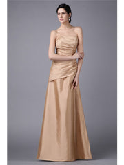 Sheath/Column Strapless Sleeveless Pleats Long Taffeta Dresses