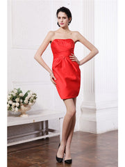 Sheath/Column Strapless Sleeveless Pleats Short Woven Satin Bridesmaid Dresses