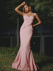 Sheath/Column Stretch Crepe Ruched V-neck Sleeveless Floor-Length Bridesmaid Dresses