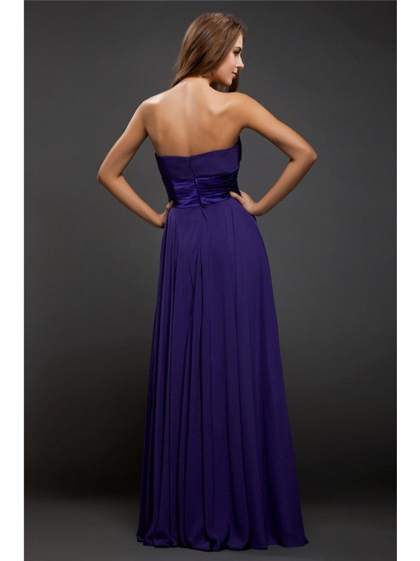 Sheath/Column Sweetheart Beading Sleeveless Long Chiffon Dresses