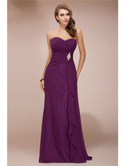 Sheath/Column Sweetheart Sleeveless Long Beading Ruffles Chiffon Bridesmaid Dresses - US 2 / UK 6 / EU 32